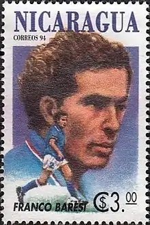 With the Italy national team, he was a member of the Italian squad that won the 1982 FIFA World Cup. He also played in the 1990 World Cup, where he was named in the FIFA World Cup All-Star Team, finishing third in the competition. At the 1994 World Cup, he was named Italy's captain and was part of the squad that reached the final, although he would miss a penalty in the resulting shoot-out as Brazil lifted the trophy. Baresi also represented Italy at two UEFA European Championships, in 1980 and 1988, and at the 1984 Olympics, reaching the semi-finals on each occasion.