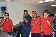 Rijkaard has evidently learned to curb the quick temper of his playing days and is often a portrait of calm and stability in training and along the touchline. He rarely courts controversy in the media and is more apt now to promote a positive environment and let his team's play speak for itself when faced with intense rivalry or criticism.[24] The tactics used during his tenure as manager of Barcelona best exemplify Rijkaard's commitment to playing stylish attacking football. During the team's 2004–05 and 2005–06 campaigns, the coach frequently fielded a 4–3–3 formation, a system which encouraged the flair and creativity of the players in the front third of the field and created optimal interplay between the midfielders and forwards during attacks, with Ronaldinho being the focal point of the team's offence.[25] Within this system, the four defenders also tended to play in a relatively high position on the pitch to support the midfield, which frequently advanced to participate in the attack. The team generally focuses on maintaining possession in the opponents' half of the field, applying pressure in order to force the opposition to make errors in defense and offensive counter-attacking.