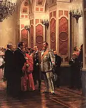 On 17 May, Gerhardt and other doctors, including Ernst von Bergmann, diagnosed the growth as laryngeal cancer.[58] Bergmann recommended consulting a leading British cancer specialist, Morell Mackenzie; he also recommended a thyrotomy to gain better access to the inside of the larynx, followed by the complete removal of the larynx – a total laryngectomy – if the situation proved serious. While Victoria was informed of the need for an immediate operation, Frederick was not told.[59] Despite the tentative diagnosis of cancer, the doctors hoped the growth would prove to be a benign epithelioma. A room on the top floor of the Crown Prince's palace was then equipped as an operating theatre, but Bergmann elected to put the operation on hold until Mackenzie could provide his assessment.[59] Mackenzie arrived in Berlin on 20 May, but after examining Frederick recommended a biopsy of the growth to determine whether or not it was malignant. He conducted the biopsy the following morning, after which he sent tissue samples to the distinguished pathologist Rudolf Virchow for microscopic examination. When Virchow was unable to detect any cancerous cells despite several separate analyses, Mackenzie declared his opposition to a laryngectomy being performed, as he felt it would be invariably fatal, and said he would assume charge of the case. He gave his assurance that Frederick would fully recover "in a few months."[60] While Gerhardt and Physician-General August Wegner concurred with Mackenzie, Bergmann and his colleague Adalbert Tobold held to their original diagnosis of cancer. In addition to Mackenzie's opinion, Bismarck strongly opposed any major operation on Frederick's throat, and pressed the Kaiser to veto it.[60] On 9 June, Mackenzie again biopsied the growth and sent the samples to Virchow, who reported the following day that he was again unable to detect any signs of cancer.[60]
