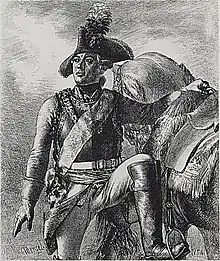 Friedrich Wilhelm Freiherr von Seydlitz[Note 1] (3 February 1721 – 8 November 1773[1]) was a Prussian officer, lieutenant general, and among the greatest of the Prussian cavalry generals. He commanded one of the first Hussar squadrons of Frederick the Great's army and is credited with the development of the Prussian cavalry to its efficient level of performance in the Seven Years' War. His cavalryman father retired and then died while Seydlitz was still young. Subsequently, he was mentored by Margrave Frederick William of Brandenburg-Schwedt. Seydlitz's superb horsemanship and his recklessness combined to make him a stand-out subaltern, and he emerged as a redoubtable Rittmeister (cavalry captain) in the War of Austrian Succession (1740–1748) during the First and Second Silesian Wars.
