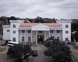 Although it was uncommon at the time for Nigerian families to invest in much education for girls, Frances' parents believed in the importance of education for both boys and girls.[2]:28 She attended Abeokuta Grammar School for her secondary education.[5] The school had initially been open only to male students, but it admitted its first female students in 1914, and Frances was first among the six girls registered for study that year.[2]:28–29 From 1919 to 1922, she went abroad and attended a finishing school for girls in Cheshire, England, where she learned elocution, music, dressmaking, French, and various domestic skills. It was there that she made the permanent decision to use her shortened Yoruba name, Funmilayo, instead of her Christian name Frances,[2]:30–31 likely in response to personal experiences of racism in England.[6] Afterwards, she returned to Abeokuta and worked as a teacher.[3]