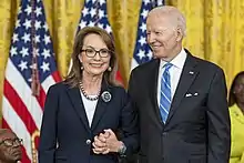 The White House awarded Giffords the Presidential Medal of Freedom on July 7, 2022.[105] She was the Grand Marshal of the 2023 Rose Parade and presided over the Rose Parade and the Rose Bowl game.[106]