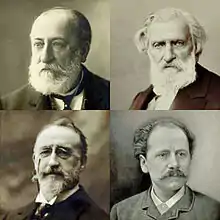 Fauré was a founding member of the Société Nationale de Musique, formed in February 1871 under the joint chairmanship of Romain Bussine and Saint-Saëns, to promote new French music.[32] Other members included Georges Bizet, Emmanuel Chabrier, Vincent d'Indy, Henri Duparc, César Franck, Édouard Lalo and Jules Massenet.[33] Fauré became secretary of the society in 1874.[34] Many of his works were first presented at the society's concerts.[34]