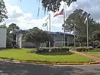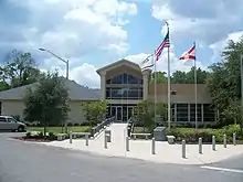 Gainesville was established in 1854 and named after Edmund P. Gaines.[14][15] The town of Gainesville was incorporated in 1869[16] and chartered as a city in 1907.[17] The University of the State of Florida was moved from Lake City to Gainesville in 1906 and its name was simplified to University of Florida in 1909.[17][18]