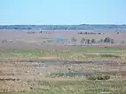There is archeological evidence, from about 12,000 years ago, of the presence of Paleo Indians in the Gainesville area, although it is not known if there were any permanent settlements.[9] A Deptford culture campsite existed in Gainesville and was estimated to have been used between 500 BCE and 100 CE.[10] The Deptford people moved south into Paynes Prairie and Orange Lake during the first century and evolved into the Cades Pond culture.[11] The Deptford people who remained in the Gainesville area were displaced by migrants from southern Georgia sometime in the seventh century.[11] These migrants evolved into the Alachua culture and they built their burial mound on top of the Deptford culture campsite.[10] When Europeans made first contact in the area, the Potano lived in the area. They were descendants of the Alachua culture people.[12] European contact diminished the numbers of native peoples (through disease, enslavement, war) and Spanish colonists began cattle ranching in the Paynes Prairie area in the 18th century. The Spanish ceded Florida to the US in 1821.[13]