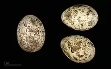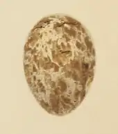 The first eggs are laid in late April in southern Germany, early May in northwest Europe, and late May in Finland. The season is prolonged with some birds nesting as late as July.[17] The clutch is typically four or five eggs (range two to six), which are usually whitish or buff with grey, purple and brown blotches.[17] The average size of the egg is 20 mm × 15 mm (0.79 in × 0.59 in), and it weighs 2.2 g (0.078 oz), of which 6% is shell.[32] The eggs are incubated for 11–12 days by both adults, although only the female stays on the nest at night. The chicks are altricial, hatching naked and with closed eyes, and are fed by both parents. They fledge about 10 days after hatching (range 9–12), leaving the nest shortly before they are able to fly.[17] They are assisted with feeding for a further two weeks, and the family may stay together for a few days after that.[22] The short incubation and fledging times may be a result of predation pressure, the rapid development of the chicks enabling them to leave the vulnerable nest as early as possible, even while still flightless. This avoids the possible loss of an entire brood, but means that the adults must provide food to the young for a significant period until they can fend for themselves.[33] One brood per year is normal,[34] although a few second broods are known.[22]