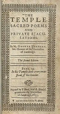 - 1633: The Temple, Sacred Poems and Private Ejaculations. (Cambridge: Printed by Thomas Buck and Roger Daniel).[58]