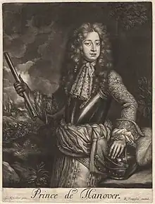 George was born on 28 May 1660 in the city of Hanover in the Duchy of Brunswick-Lüneburg in the Holy Roman Empire.[lower-alpha 2] He was the eldest son of Ernest Augustus, Duke of Brunswick-Lüneburg, and his wife, Sophia of the Palatinate. Sophia was the granddaughter of King James I of England through her mother, Elizabeth Stuart, Queen of Bohemia.[3]