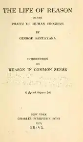 - 1905–1906. The Life of Reason: or the Phases of Human Progress, 5 vols.