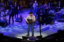 In November 2013, Billboard presented Strait with its Legend of Live honor during the 10th annual Billboard Touring Awards ceremony.[42] The award honors the concert industry's top artist based on Billboard's Boxscore chart and box-office performance.[43] Strait is the first country artist to receive Billboard's highest touring accolade.[44] On April 19, 2015, Strait made a guest appearance at the 2015 ACM Awards, he performed "All My Ex's Lives in Texas" and his new single "Let it Go".[45]