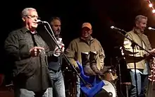 Strait began his musical career while attending Pearsall High School, where he performed in a rock and roll garage band, known as the Stoics, taking most influence from the Beatles.[17] "The Beatles were big," Strait confirmed. "I listened to them a lot and that whole bunch of groups that were popular then." His musical preference soon turned to country with singers Hank Thompson, Lefty Frizzell, Merle Haggard, George Jones, Bob Wills, Hank Williams, and Frank Sinatra influencing his style. Strait did not tune to the country music radio often as a youth, usually listening to the news and the farmer's report. His introduction to country music came mostly by way of live performances, which, according to Strait, could be heard in every town in Texas.[18]