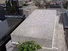 While still in office, Pompidou died on 2 April 1974, at 9 PM, while in his apartment,[12] from Waldenström macroglobulinemia. His body was buried on 4 April, in the churchyard of Orvilliers, where he had bought an old baker's house which he turned into a weekend home.[13] The official memorial service for him was held at Notre-Dame de Paris with 3,000 dignitaries in attendance (including 28 heads of state and representatives from 82 countries). April 6 was declared a national day of mourning and entertainment and cultural events were canceled, theatres and schools closed.[14][15]