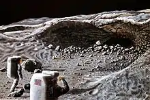 In June 1975, O'Neill led a ten-week study of permanent space habitats at NASA Ames. During the study he was called away to testify on July 23 to the House Subcommittee on Space Science and Applications.[41] On January 19, 1976, he also appeared before the Senate Subcommittee on Aerospace Technology and National Needs. In a presentation titled Solar Power from Satellites, he laid out his case for an Apollo-style program for building power plants in space.[42] He returned to Ames in June 1976 and 1977 to lead studies on space manufacturing.[43] In these studies, NASA developed detailed plans to establish bases on the Moon where space-suited workers would mine the mineral resources needed to build space colonies and solar power satellites.[44]
