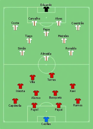 - "Tactical Line-up – Last 16 – Spain-Portugal" (PDF). FIFA.com. Fédération Internationale de Football Association. 29 June 2010. Archived from the original (PDF) on 14 July 2010. Retrieved 29 June 2010.