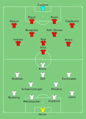 - "Tactical Line-up – Semifinal – Germany-Spain" (PDF). FIFA.com. Fédération Internationale de Football Association. 7 July 2010. Archived from the original (PDF) on 21 August 2010. Retrieved 7 July 2010.