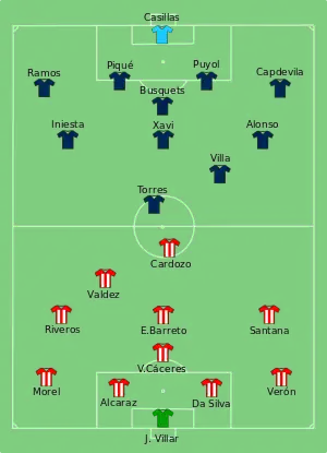 - "Tactical Line-up – Quarterfinal – Paraguay-Spain" (PDF). FIFA.com. Fédération Internationale de Football Association. 3 July 2010. Archived from the original (PDF) on 9 November 2012. Retrieved 3 July 2010.