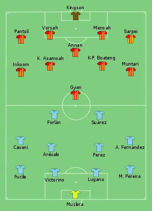 - "Tactical Line-up – Quarterfinal – Uruguay-Ghana" (PDF). FIFA.com. Fédération Internationale de Football Association. 2 July 2010. Archived from the original (PDF) on 9 November 2012. Retrieved 2 July 2010.
