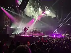 Ghost began A Pale Tour Named Death in London, England at Royal Albert Hall on 9 September 2018. A North American tour of the same name began later in the fall that year featuring two headlining arena shows in Los Angeles and New York City.[65][66] An early 2019 European tour of the same name was announced on 10 September 2018.[67] In March 2019, the band performed in Australia and Japan as part of Download Festival.[68] Ghost was later announced as the opening act for Metallica's WorldWired Tour from May to August 2019.[69] A second North American tour was announced on 1 April 2019, with Nothing More as support.[70] A European tour at the end of 2019 with All Them Witches and Tribulation was announced on 8 July 2019.[71]