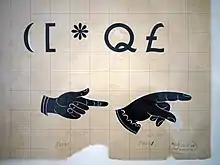 Gill broached the topic of the similarity with Johnston in a variety of ways in his work and writings, writing to Johnston in 1933 to apologise for the typeface bearing his name and describing Johnston's work as being important and seminal.[51][61] However, in his Essay on Typography, he proposed that his version was "perhaps an improvement" and more "fool-proof" than Johnston's.[39] Johnston and Gill had drifted apart by the beginning of the 1920s, something Gill's groundbreaking biographer Fiona MacCarthy describes as partly due to the anti-Catholicism of Johnston's wife Greta.[62][63] Frank Pick, the Underground Electric Railways Company managing director who commissioned Johnston's typeface, privately thought Gill Sans "a rather close copy" of Johnston's work.[51]