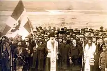 This turn of events proved highly unpopular with the local Greek population, and their representatives under Georgios Christakis-Zografos formed the Panepirotic Assembly in Gjirokastër in protest.[43] The Assembly, short of incorporation with Greece, demanded either local autonomy or an international occupation by forces of the Great Powers for the districts of Gjirokastër, Sarandë, and Korçë.[44]
