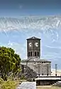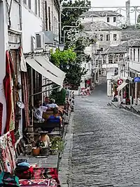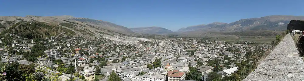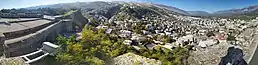 The city appears in the historical record dating back in 1336 by its medieval Greek name, Αργυρόκαστρο, Argyrókastro,[1] as part of the Byzantine Empire.[2] It first developed in the hill where the Gjirokastër Fortress is located. In this period, Gjirokastër was contested between the Despotate of Epirus and the Albanian clan of Zenebishi under Gjon Zenebishi who made it his capital in 1417. It was taken by the Ottomans in 1418, a year after's Gjon's death and it became the seat of the Sanjak of Albania. Throughout the Ottoman era, Gjirokastër was officially known in Ottoman Turkish as Ergiri and also Ergiri Kasrı.[3] During the Ottoman period conversions to Islam and an influx of Muslim converts from the surrounding countryside made Gjirokastër go from being an overwhelmingly Christian city in the 16th century into one with a large Muslim population by the early 19th century.[4][5] Gjirokastër also became a major religious centre for Bektashi Sufism.[6] Taken by the Hellenic Army during the Balkan Wars of 1912–13 it was eventually incorporated into the newly independent state of Albania in 1913. This proved highly unpopular with the local Greek population, who rebelled; after several months of guerrilla warfare, the short-lived Autonomous Republic of Northern Epirus was established in 1914 with Gjirokastër as its capital. It was definitively awarded to Albania in 1921.[7] In more recent years, the city witnessed anti-government protests that led to the Albanian civil war of 1997.[8]