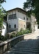 Gjirokastër first developed on the hill where the castle of the city is located in the Middle Ages. The first fortification dates to the 5th-6th centuries CE during the period of Slavic migrations to the Balkans. It was expanded in the 9th-10th centuries, while the first signs of actual settlement medieval urban development in the castle area date to the 13th-14th centuries.[24][25] During this period, Gjirokastër developed into a center known in medieval sources as Argyropolis (Medieval Greek: Ἀργυρόπολις, meaning "Silver City") or Argyrokastron (Medieval Greek: Ἀργυρόκαστρον, meaning "Silver Castle").[26] The city was part of the Despotate of Epirus and was first mentioned by the name Argyrokastro by John VI Kantakouzenos in 1336.[1] That year Argyrokastro was among the cities that remained loyal to the Byzantine Emperor during a local Epirote rebellion in favour to Nikephoros II Orsini.[27]