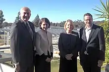 Following the resignation of Mike Baird as NSW Liberal leader and Premier on 19 January 2017, Berejiklian announced her intention to succeed him as the leader of the Liberal Party, and hence to become the 45th Premier of New South Wales. Baird endorsed Berejiklian as his successor, declaring that she would be "an outstanding Premier... No doubt about it."[45] A deal was struck between the moderate, centre-right, and right factions of the Liberal Party, facilitating the moderate Berejiklian's rise to the leadership, with conservative Dominic Perrottet as her deputy.[46] The next day, ministers Andrew Constance and Rob Stokes—Berejiklian's only serious leadership challengers—decided not to contest the leadership, and instead opted to endorse Berejiklian. This left Berejiklian to take the leadership unopposed at the ensuing leadership contest held on 23 January.[47][48][49] She was duly sworn in as Premier later that day, becoming the second woman to hold the post. The first was Labor's Kristina Keneally, who served in the position from 2009 to 2011.