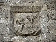 It is said that Brigid of Kildare is depicted milking a cow as a stone carving above one of the entrances to the tower.[80]
