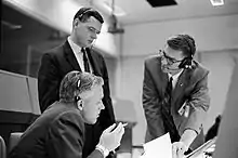 Lunney was stationed in Bermuda for the uncrewed Gemini 2 mission.[20] He worked backup on Gemini 3, taking charge of the newly established Mission Control Center in Houston, at a time when flights were still controlled from Cape Canaveral in Florida. On Gemini 4, he again was working backup, this time in Florida, supporting the first mission that was controlled entirely from Houston.[20] After spending some time on uncrewed testing for the Apollo program, he returned to work as a flight director on Gemini 9 and Gemini 11 and lead flight director on, Gemini 10 and Gemini 12.[21]
