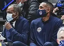 When the time came to choose a college, Hill's mother told the Fox Sports documentary Beyond the Glory, that she wanted him to attend Georgetown, while his father preferred the University of North Carolina.[1] Hill decided to attend Duke University, playing four years with the Blue Devils and winning national titles in 1991 and 1992. Duke became the first Division I program to win consecutive titles since UCLA in 1966–73. Despite losing two of the biggest contributors on the Blue Devils, Christian Laettner (in 1992) and Bobby Hurley (each of whom went on to play in the NBA), Hill led Duke to the championship game once again in 1994, but lost to the Arkansas Razorbacks.[2] Hill won the Henry Iba Corinthian Award as the nation's top defensive player in 1993, and in 1994 he was the ACC Player of the Year.[3] During his collegiate career, Hill became the first player in ACC history to collect more than 1,900 points, 700 rebounds, 400 assists, 200 steals, and 100 blocked shots. As a result of his successful college career, he became the eighth player in Duke history to have his jersey number (33) retired. After his freshman season at Duke, Hill played on the bronze medal-winning U.S. team at the 1991 Pan American Games, held in Havana, Cuba.[4] As an amateur, Hill was also part of the select team of college players that prepared and scrimmaged against the eventual U.S. men's basketball team ("Dream Team") for the 1992 Barcelona Olympics.
