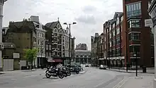 The traditional start point for the Great North Road was Smithfield Market on the edge of the City of London. The initial stretch of the road was St John Street which begins on the boundary of the City (the site of the former West Smithfield Bars), and runs through north London. Less than a hundred metres up St John Street, into Clerkenwell, stood Hicks Hall, the first purpose-built sessions house for the Middlesex justices of the peace. The Hall was built in 1612, on an island site in the middle of St John Street (where St John's Lane branches to the west); this building was used as the initial datum point for mileages on the Great North Road (despite not being located at the very start of the road). Its site continued to be used for this purpose even after the building was demolished in 1782.[2]