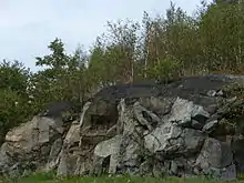 Sudbury is built around many small, rocky mountains with exposed igneous rock of the Canadian (Precambrian) Shield. The ore deposits in Sudbury are part of a large geological structure known as the Sudbury Basin, which are the remnants of a nearly two billion-year-old impact crater;[33] long thought to be the result of a meteorite collision, more recent analysis has suggested that the crater may in fact have been created by a comet.[34]