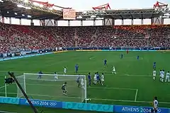 For the first time in history the final was a repeat of the opening match, with Greece and hosts Portugal facing off in a rematch. In the 57th minute Charisteas gave Greece the lead with a header from a corner by Angelos Basinas.[22] Portugal had much of the possession, but the Greece defence was solid and dealt with most attacks. Cristiano Ronaldo had a good chance to equalise in the dying moments, but could not apply a finish. Greece held on to win 1–0, winning the tournament, an achievement considered by many to be one of the greatest football upsets in history, if not the greatest.[23][24][25] Greece captain Zagorakis was named the player of the tournament, having led Greece and made the most tackles in the entire tournament.[26]