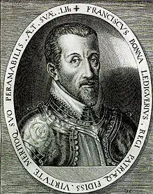 In August 1575, Lesdiguières became the new leader of the Protestants and, thanks to the accession of Henry IV to the throne of France, allied himself with the governor and the lieutenant general of the Dauphiné. But this alliance did not bring an end to the conflicts. Indeed, a Catholic movement, the Ligue, which took Grenoble in December 1590, refused to make peace. After months of assaults, Lesdiguières defeated the Ligue and took back Grenoble. He became the leader of the entire province.[22]