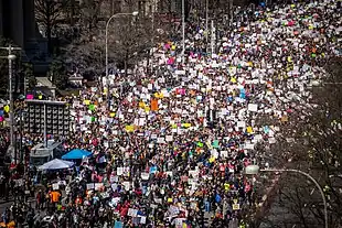 Though gun control is not strictly a partisan issue, there is generally more support for gun control legislation in the Democratic Party than in the Republican Party.[44] The Libertarian Party, whose campaign platforms favor limited government regulation, is outspokenly against gun control.[45]