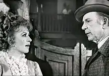 In the radio series, Kitty's profession was hinted at, but never explicit; in a 1953 interview with Time, Macdonnell declared, "Kitty is just someone Matt has to visit every once in a while".[1] The magazine observed that she is "obviously not selling chocolate bars".[11] The television show first portrayed Kitty as a saloon dance hall employee, then from season two, episode 36 ("Daddy-O"), as half-owner of the Long Branch Saloon.