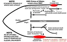 - Description of lower hull indentation damage on wreck of HMS Prince of Wales