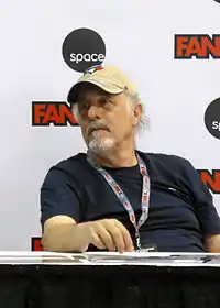 When John Carpenter, who had co-written the first two Halloween films with Debra Hill and directed the original, signed on as an executive producer in 2016, he described his intention: "Thirty-eight years after the original Halloween, I'm going to help to try to make the 10th sequel the scariest of them all."[32] He discussed his reasoning for revisiting the series for the first time since producing 1982's Halloween III: Season of the Witch in an interview with Rotten Tomatoes, "I talked about the Halloweens for a long time, the sequels — I haven't even seen all of them [...] But finally it occurred to me: Well if I'm just flapping my gums here, why don't I try to make it as good as I can? So, you know, stop throwing rocks from the sidelines and get in there and try to do something positive."[33] When the rights were acquired by Blumhouse, filmmaker Adam Wingard discussed making a new Halloween film, but ultimately dropped out after being sated by an email of encouragement from Carpenter, "I kinda walked away from it like, I just got everything I wanted out of this job. 'This is about as good as it gets.'"[34] On February 9, 2017, David Gordon Green and Danny McBride were announced as handling screenwriting duties, with Green directing and Carpenter advising the project.[35] Carpenter said that he was impressed with the pitch presented by the co-writers, solicited by Jason Blum, proclaiming that "They get it."[36] Green and McBride brought along their UNCSA colleague Jeff Fradley to co-write the script alongside them.[37]