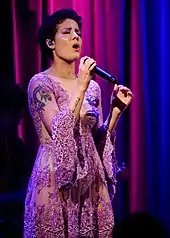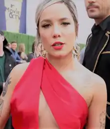 In November 2018, Halsey performed at the Victoria's Secret Fashion Show alongside numerous other artists,[237] but in December she criticised the company for its lack of inclusion of transgender models in its various shows, stating, "as a member of the LGBT+ community, I have no tolerance for a lack of inclusivity. Especially not motivated by stereotype."[238][239] Later that month, she performed her hit song "Without Me" on The Voice and was criticized for "sensually" dancing with backup dancer Jade Chynoweth. Many perceived the backlash as homophobic, including Halsey herself who defended the performance.[240][241] In a January 2019 interview with Glamour, she advocated for a stronger presence of women in music.[242] In April 2019, she and 29 other musical acts were featured on the charity single "Earth", which raises climate change awareness.[122] In May 2020, Halsey, alongside Yungblud, joined protests in Los Angeles for racial justice in the wake of the murder of George Floyd.[9]