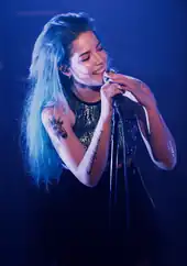 In her early career, Halsey drew criticism for allegedly calling herself "tri-bi" in an interview, due to her being biracial, bipolar, and bisexual. In a 2016 interview with Rolling Stone, she criticized the label as a trivializing way to describe her.[204] Halsey became most known for her signature dyed blue hair in her early career.[205] She sparked controversy in 2016 after several fan interactions, some involving the artist kissing underage fans.[206]