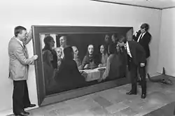 Painting The Last Supper I by Han van Meegeren on 11th art and antiques fair in Rotterdam August 31, 1984. - In the summer of 1938, van Meegeren moved to Nice. 1939 he painted The Last Supper I in the style of Vermeer.