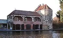 Van Meegeren's father did not share his son's love of art; he often forced Han to write a hundred times, "I know nothing, I am nothing, I am capable of nothing."[11][12] . Instead, Han's father compelled him to study architecture at the Technische Hogeschool (Delft Technical College) in 1907.[4] He received drawing and painting lessons, as well. He easily passed his preliminary examinations but never took the Ingenieurs (final) examination because he did not want to become an architect.[9] He nevertheless proved to be an apt architect and designed the clubhouse for his rowing club in Delft which still exists (see image).[9]