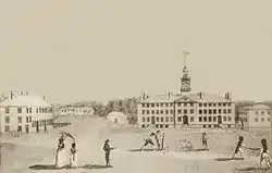 At one point in its history, the southwest corner of Hanover, site of "The Plain", was known as "Dresden", which in the 1780s joined other disgruntled New Hampshire towns along the Connecticut River that briefly defected to what was then the independent Vermont Republic.[7] After various political posturings, however, the towns returned to New Hampshire at the heated insistence of George Washington.[8] One remnant of this era is that the name "Dresden" is still used in the Dresden School District, an interstate school district serving both Hanover and Norwich, Vermont—the first and one of the few interstate school districts in the nation.