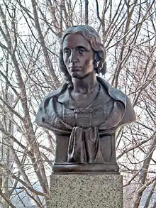 Stowe claimed to have had a vision of a dying slave during a communion service at Brunswick's First Parish Church, which inspired her to write his story.[11] What also likely allowed her to empathize with slaves was the loss of her eighteen-month-old son, Samuel Charles Stowe. She noted, "Having experienced losing someone so close to me, I can sympathize with all the poor, powerless slaves at the unjust auctions. You will always be in my heart Samuel Charles Stowe."[12] On March 9, 1850, Stowe wrote to Gamaliel Bailey, editor of the weekly anti-slavery journal The National Era, that she planned to write a story about the problem of slavery: "I feel now that the time is come when even a woman or a child who can speak a word for freedom and humanity is bound to speak ... I hope every woman who can write will not be silent."[13]