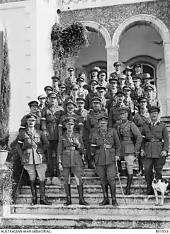 On 9 July 1915, Chauvel was promoted to brigadier general, back-dated to when he assumed command of the 1st Light Horse Brigade on 10 December 1914.[30] He spent six weeks in Egypt, in June and July, in hospital with pleurisy, but returned in time for the August offensive,[31] for which he was mentioned in despatches.[32] Chauvel was acting commander of the New Zealand and Australian Division for short periods in September and October in Godley's absence. Then on 6 November 1915, he became commander of the 1st Division, and was promoted to major general. He commanded this division through the final phase of the Gallipoli Campaign, the evacuation, and the reorganisation in Egypt in February and March 1916.[33] For his part in the evacuation, he was mentioned in despatches.[34] His role in the campaign as a whole was recognised by his appointment as a Companion of the Order of the Bath.[35]