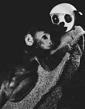 Harlow tried to reintegrate the monkeys who had been isolated for six months by placing them with monkeys who had been raised normally.[14][26] The rehabilitation attempts met with limited success. Harlow wrote that total social isolation for the first six months of life produced "severe deficits in virtually every aspect of social behavior".[27] Isolates exposed to monkeys the same age who were reared normally "achieved only limited recovery of simple social responses".[27] Some monkey mothers reared in isolation exhibited "acceptable maternal behavior when forced to accept infant contact over a period of months, but showed no further recovery".[27] Isolates given to surrogate mothers developed "crude interactive patterns among themselves".[27] Opposed to this, when six-month isolates were exposed to younger, three-month-old monkeys, they achieved "essentially complete social recovery for all situations tested".[28][29] The findings were confirmed by other researchers, who found no difference between peer-therapy recipients and mother-reared infants, but found that artificial surrogates had very little effect.[30]