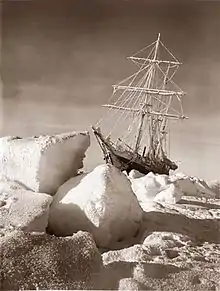 When the ship became trapped in pack ice his duties expanded to constructing makeshift housing, and, once it became clear that the ship was doomed, to altering the sledges for the journey over the ice to open water. He built the quarters where the crew took their meals (nicknamed The Ritz) and cubicles where the men could sleep. These were all christened as well; McNish shared The Sailors' Rest with Alfred Cheetham, the Third Officer. Assisted by the crew, he constructed kennels for the dogs on the upper deck.[4] Once Endurance became trapped, and the crew were spending the days on the ice, McNish erected goalposts and football became a daily fixture for the men.[8] To pass the time in the evening, McNish joined Frank Wild, Tom Crean, James McIlroy, Worsley and Shackleton playing poker in the wardroom.[18]
