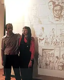 Some Pekar works were to be released posthumously,[47] including two collaborations with Joyce Brabner, The Big Book of Marriage and Harvey and Joyce Plumb the Depths of Depression, as well as a collection of the webcomics that ran as a part of The Pekar Project.[48] As of 2019, however, none of those projects have yet seen print. Working with illustrator Summer McClinton, Pekar, politically a leftist,[49] also finished a book on American Marxist Louis Proyect tentatively called The Unrepentant Marxist, after Proyect's blog. In the works since 2008, the book was to be published by Random House. After a conflict between Proyect and Joyce Brabner, Brabner announced that she would hold the book back indefinitely.[50]
