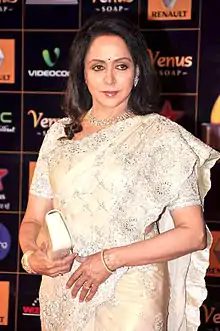 Malini made her acting debut in 1963 with the Tamil film Idhu Sathiyam.[9] Malini first acted in a lead role in Sapno Ka Saudagar (1968), and went on to feature in numerous Hindi films, frequently opposite Dharmendra, whom she married in 1980.[10][3] Malini was initially promoted as the "Dream Girl", and in 1977 starred in a film of the same name.[3] She won the Filmfare Award for Best Actress for her dual role in the comedy Seeta Aur Geeta (1972), and was nominated ten more times leading up to Baghban (2003).[11] In 2000, Malini won the Filmfare Lifetime Achievement Award and in 2019 Filmfare Special Award for 50 Years of Outstanding Contribution to Cinema.[12]