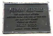 To repair his faltering finances, Melville took up public lecturing from late 1857 to 1860. He embarked upon three lecture tours[118] and spoke at lyceums, chiefly on Roman statuary and sightseeing in Rome.[123] Melville's lectures, which mocked the pseudo-intellectualism of lyceum culture, were panned by contemporary audiences.[124] On May 30, 1860, Melville boarded the clipper Meteor for California, with his brother Thomas at the helm. After a shaky trip around Cape Horn, Melville returned to New York alone via Panama in November. Later that year, he submitted a poetry collection to a publisher but it was not accepted, and is now lost. In 1863, he bought his brother's house at 104 East 26th Street in New York City and moved there.[125][126]